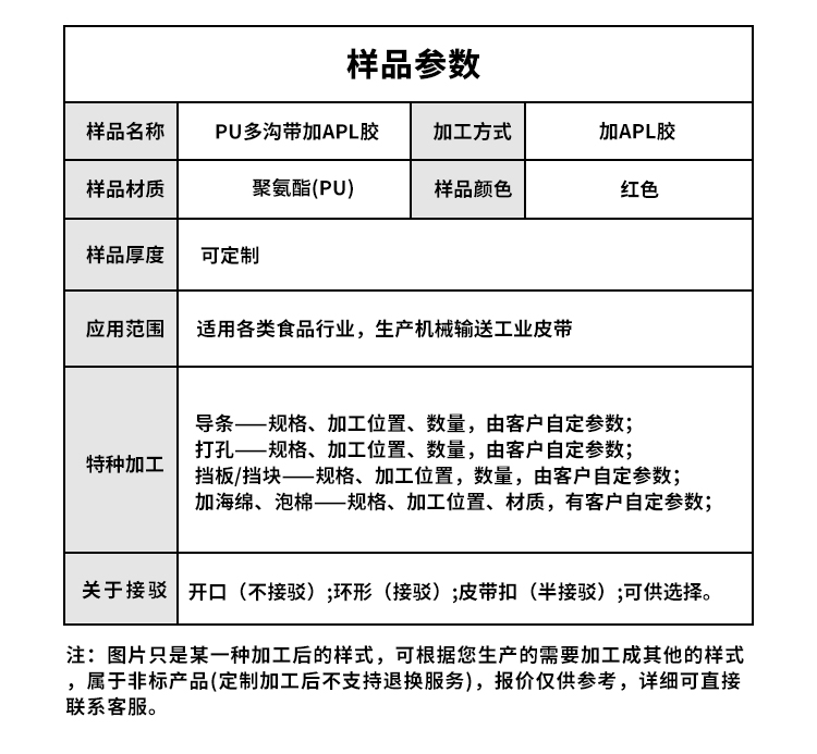 • 產(chǎn)品名稱:PU多溝帶加APL膠防滑耐磨紡織煙草傳動帶多楔帶廠家定制