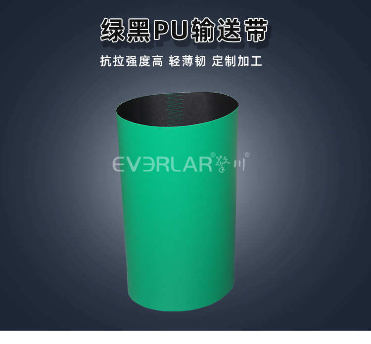 • 產(chǎn)品名稱:綠黑PU輸送帶耐磨耐切割耐腐蝕工業(yè)皮帶定制