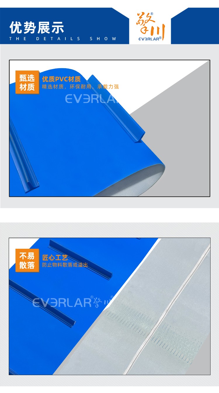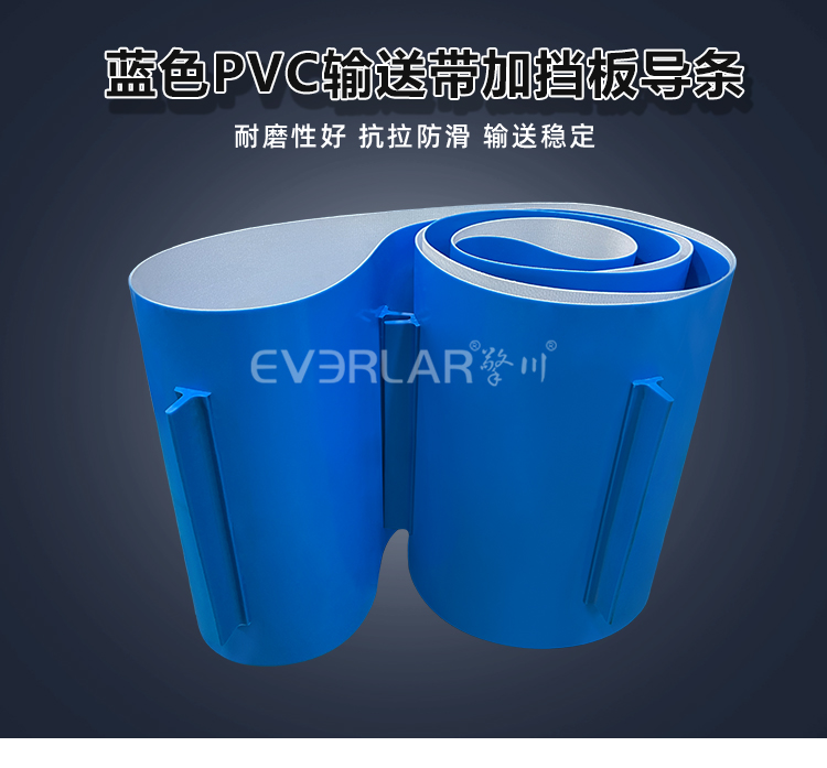 • 產(chǎn)品名稱:藍色PVC輸送帶加擋板導條耐磨防跑偏防掉落自動化生產(chǎn)線物料傳送工業(yè)皮帶