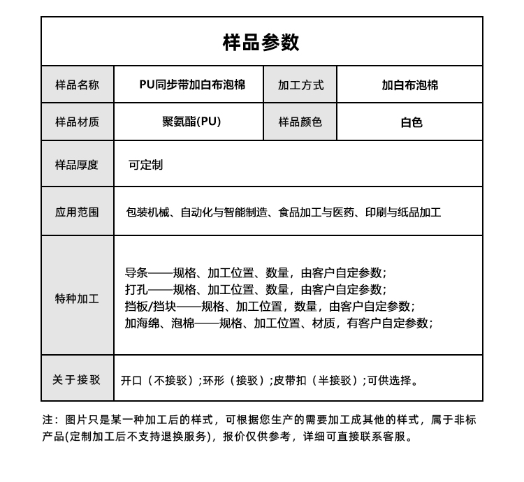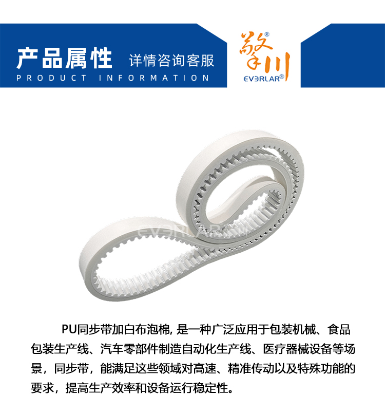 產(chǎn)品名稱:PU同步帶加白布泡棉耐磨減震包裝機(jī)分揀流水線工業(yè)皮帶定制