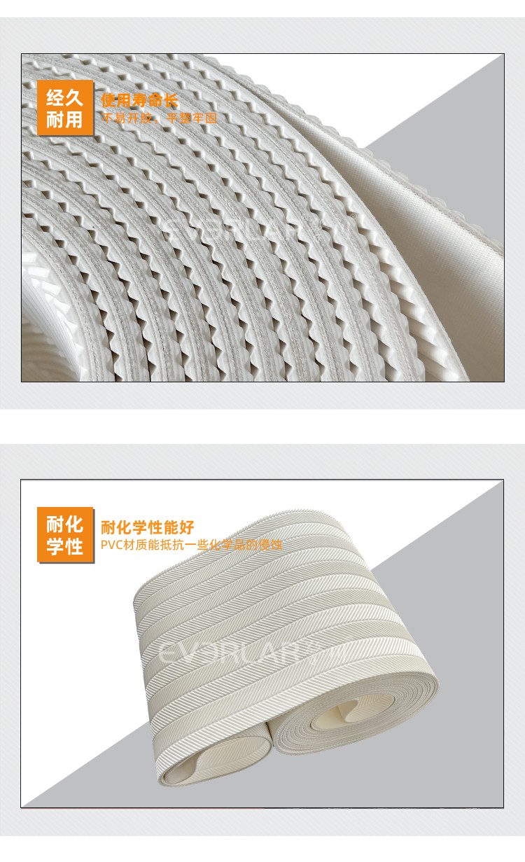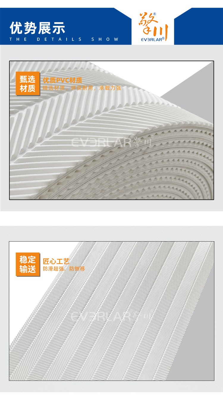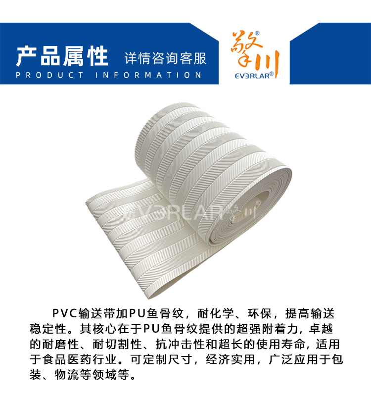 產(chǎn)品名稱:PVC輸送帶加魚骨紋耐磨耐切割食品包裝生產(chǎn)線設(shè)備傳送帶